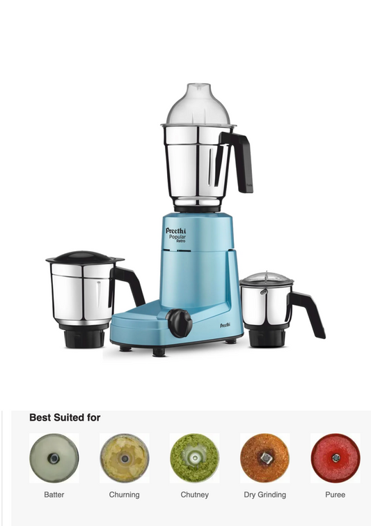 Preethi POPULAR RETRO BLUE, MG 266, 750 Mixer Grinder (3 Jars, Blue)