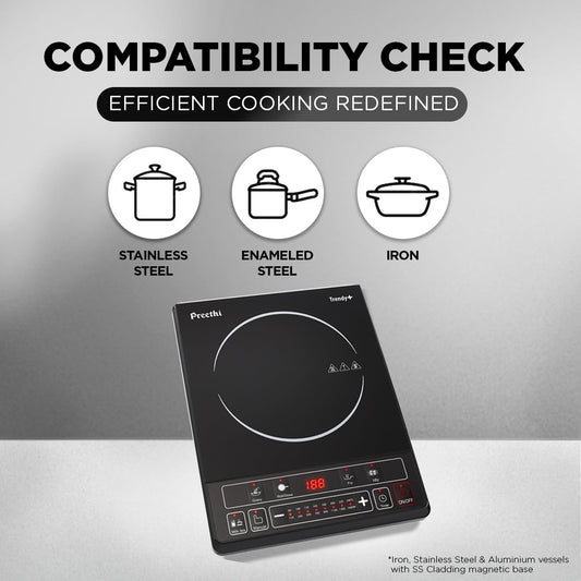 Preethi Excel Plus 117 1600-Watt Induction Cooktop Auto Shut Off and 5 Preset Menus, Power & Temperature adjustment, 1 year warranty (Black)