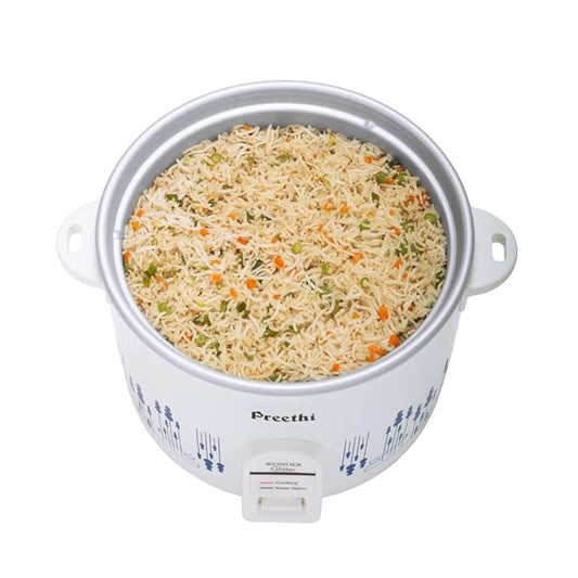 Preethi Glitter Electric Cooker, 2.2 Liters with Double Pan – White & Blue, (RC326)
