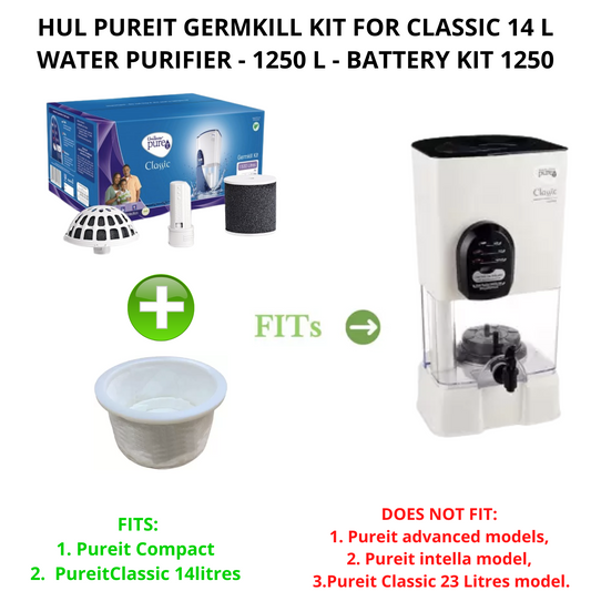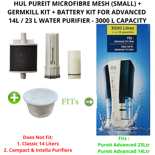 Touch N Feel~ HUL PUREIT MICROFIBRE MESH(SMALL)+GERMKILL KIT+BATTERY KIT FOR CLASSIC 14L-1250L Media Filter Cartridge Micro rating 0.2, (Pack of 4 - Battery kit - 1, Carbon filter - 1, Polishing - 1, Microfiber mesh - 1)