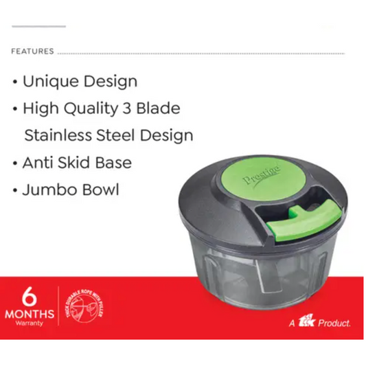 Prestige PVC 7.0 Veggie Cutter with 3 Stainless Steel Blades|Capacity-450ML|Green