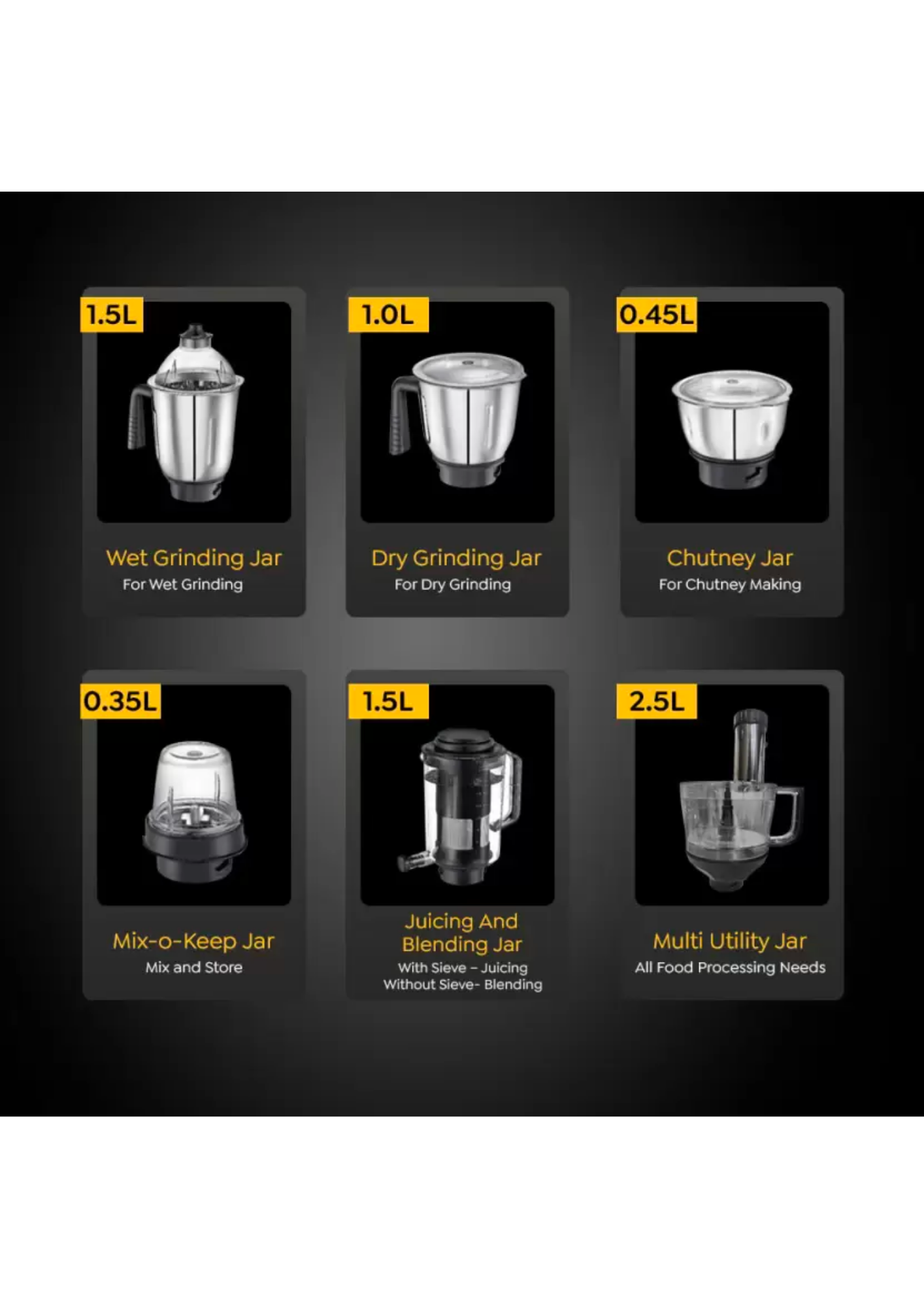 - 1000 : Higher the Wattage, tougher the Juicing/Grinding