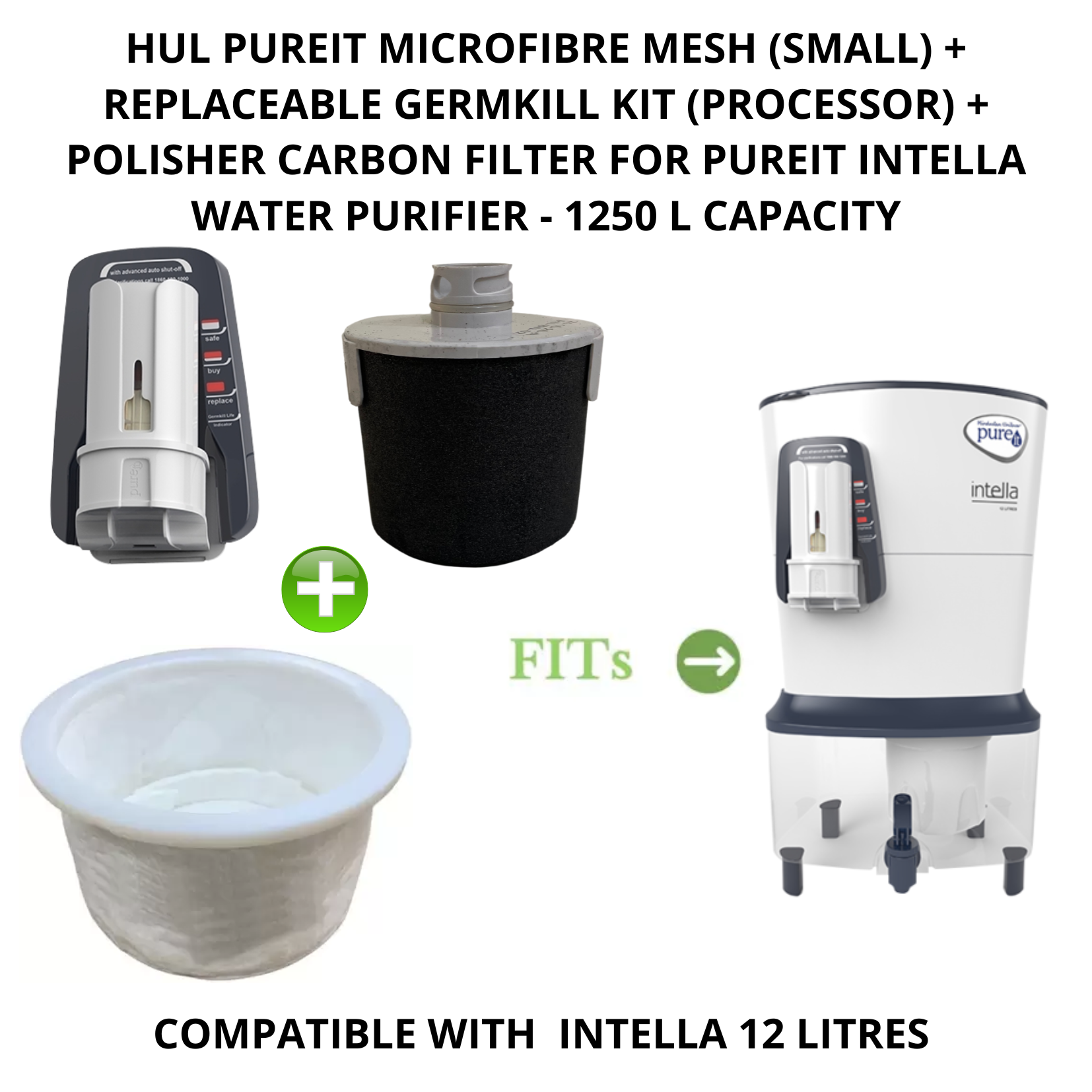 Touch N Feel HUL PUREIT MICROFIBREMESH(SMALL)+REPLACEABLE GERMKILL KIT FOR PUREIT INTELLA 12L Media Filter Cartridge,0.2 micro rating (Pack of 3 items (Germkill processor - 1 , Polisher carbon filter - 1, Microfibre mesh - 1)