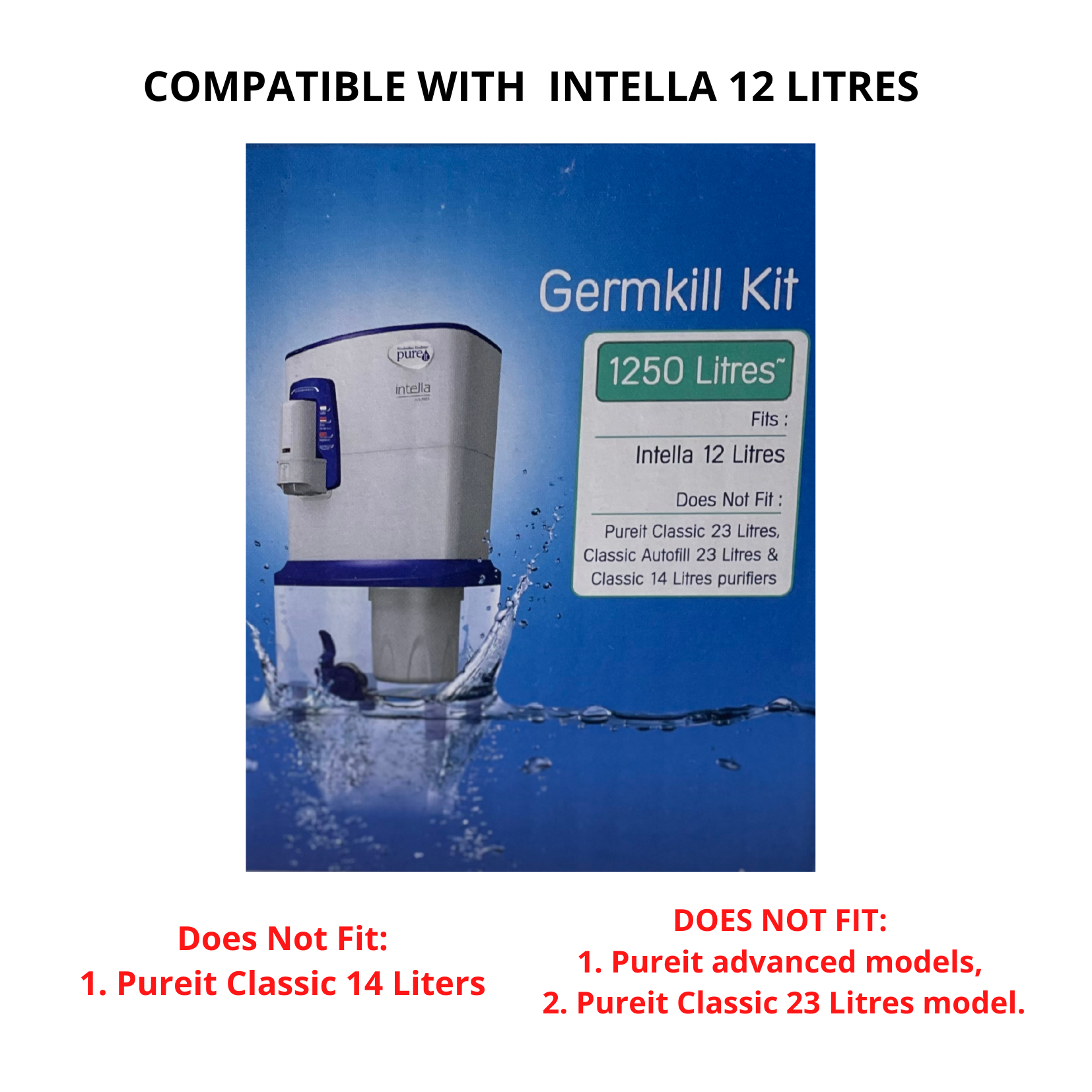 Engineered to perfection Easy to install and use Kills germs and makes water safe for drinking CAPACITY: 1250 L FITS: INTELLA 12 L WATER PURIFIER DOES NOT FIT: PUREIT CLASSIC 23 LITRES CLASSIC AUTO FILTER 23 LITRES PUREIT CLASSIC 14 LITRES